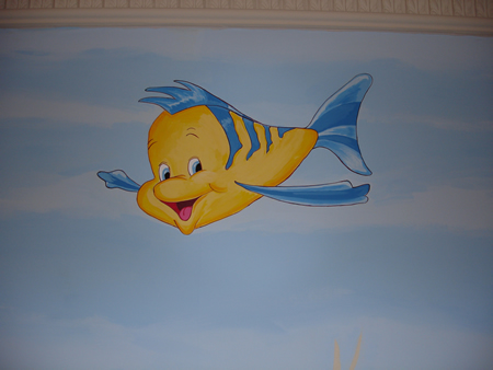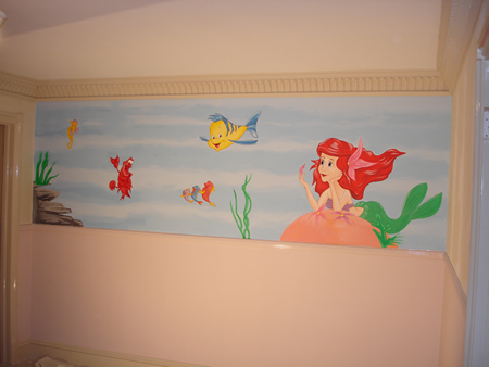 St George’s Hill, Weybridge. Both this and the finding Nemo mural shown below have been painted on opposite walls in a new baby’s nursery, to create an underwater theme.
